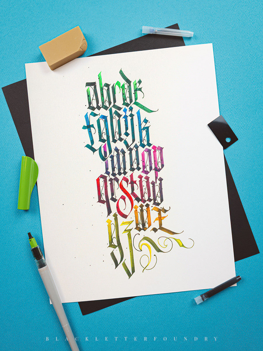- 💡 Project Ideas: Learn about tons of project ideas for pushing your blackletter boundaries with specific examples that have been shown in exhibitions, galleries, and published internationally.